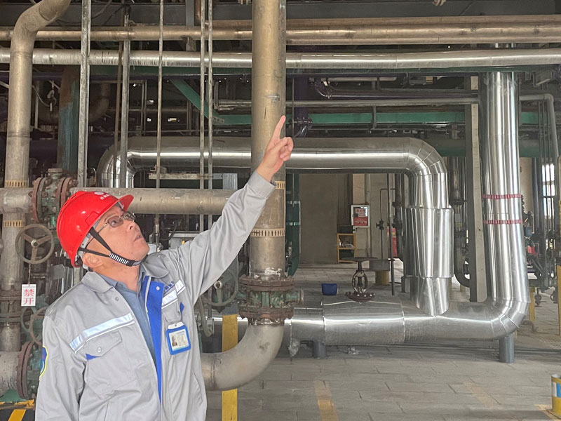 氯碱分公司党支部支委、分公司副经理林友军深入一线,亲自调研氯气总管排水管线改造问题,并制定改造方案。经改造后,氯气总管排水管道改造之后,排水更加顺畅,氯气总管运行压力平稳。