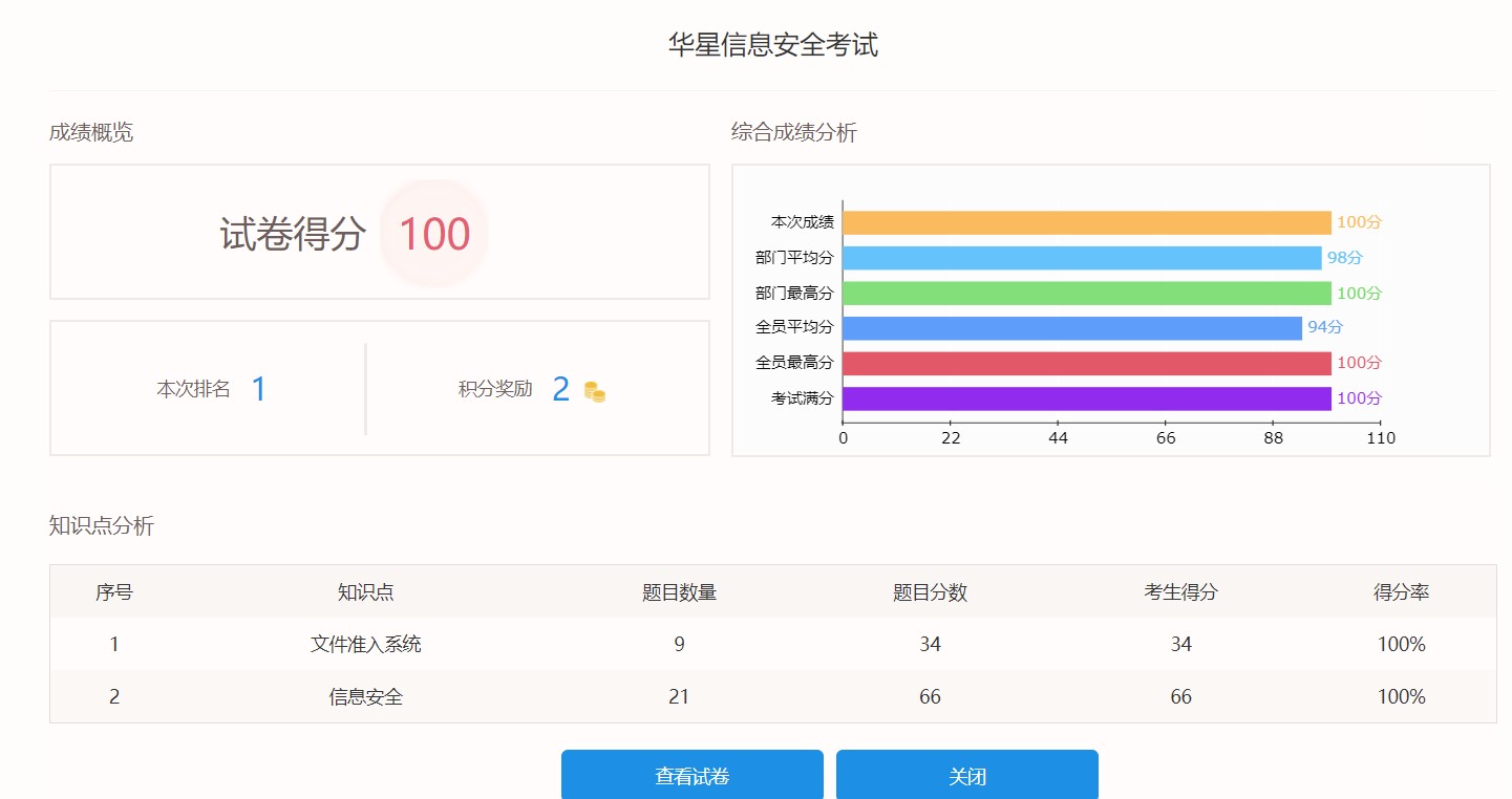 四是开展多轮信息安全考试、有奖竞答活动,对全员进行全覆盖考核,及时检验信息安全知识掌握情况,反馈活动成效,确保人人熟知信息安全理论知识,掌握技能技术。信息安全考试已有997人参加,考试合格率百分之百。