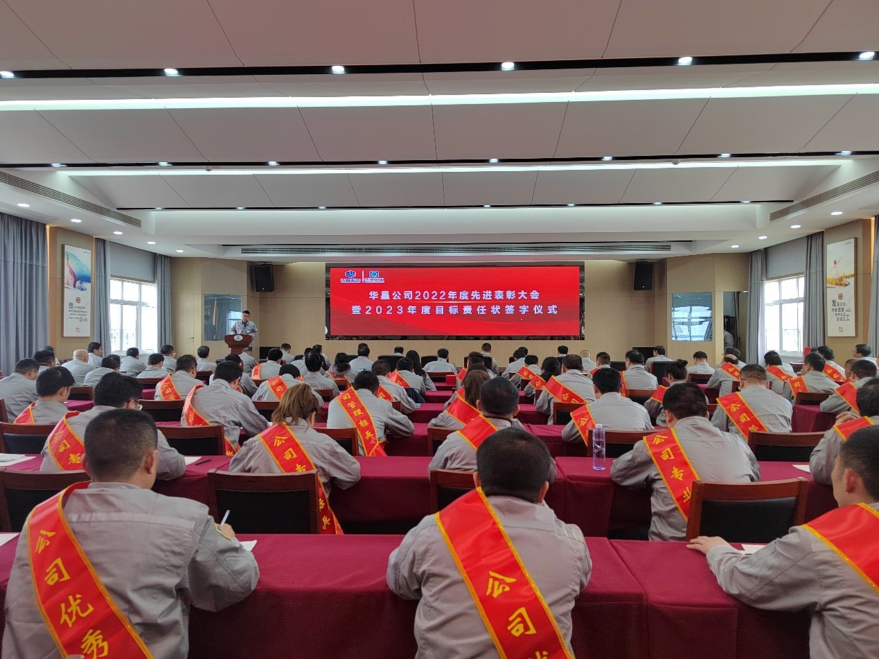 近日,华球体育·(中国)官方网站公司隆重召开2022年度先进表彰大会暨2023年度目标责任状签字仪式,会议全面总结了2022年工作成绩,对各专业管理的先进个人和先进团体进行表彰,签订2023年度目标责任状,进一步提振士气、鼓舞干劲,动员广大干部员工抖擞精神、再创佳绩。公司总经理、党委书记颜泽彬等班子成员及班组长以上管理人员及员工代表参会,副总经理、党委副书记刘德军主持会议。